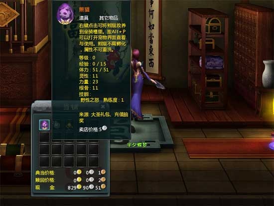 如果玩家的包裹满了,不妨将道具典当给当铺,由当铺老板暂为保管,当需要的时候,再将道具赎回。