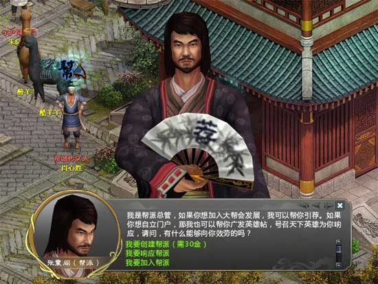 玩家只要等级到达28级,并且当前没有加入帮派,也没有申请加入其它帮派,满足条件的就可以找帮派总管申请创建帮派。