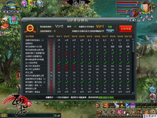 1、VIP等级是一种针对角色的终身特权,一旦获得,终身拥有。