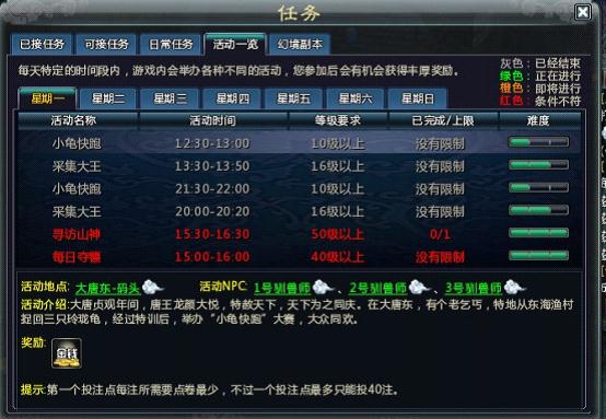 比如这样的游戏就很好。周一到周日都有活动,几乎玩家休息的时间,中午晚上都有。很适合所有的玩家一起练级。