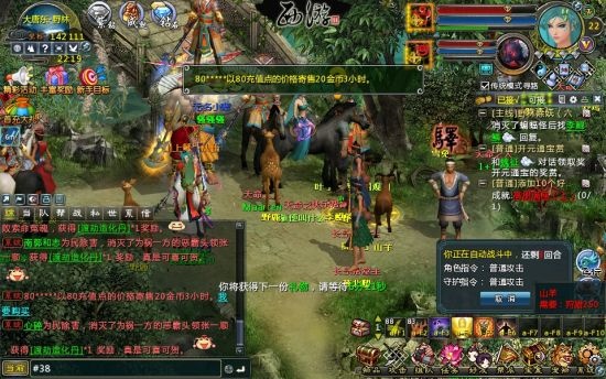 堪比QQ交友的聊天系统更优化的聊天系统,让你边玩游戏边聊天,游戏中进行聊天时,可以针对不同场合以及聊天对象来选择发送的频道,除了与好友聊天,还有当前、组队、帮派、私聊、世界、喇叭等多个聊天频道。世界:向整个游戏世界的玩家喊话,等级≥10的玩家才可以使用。由于发言可以被所有玩家看到,为了保证正常的聊天秩序,世界频道对连续发言规定了时间间隔,并且每次说话需要消耗3银,包裹里面如果有千里传音符,则代替金币自动消耗。让你可以在全世界面前喊出自己心中的任何喜欢之人。各种有趣好玩的动态表情及各种颜色的聊天字符轻松交友快乐游戏。
