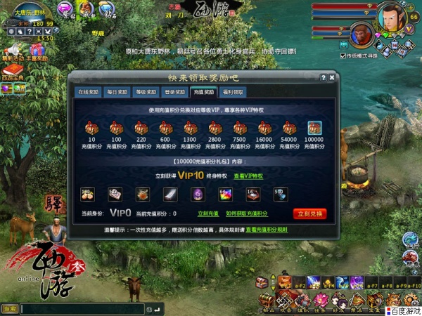 活动介绍:为感谢充值用户对《西游3》的厚爱和大力支持,新服“七十二变”特筹划了一个充值积分大回馈活动,活动中所有奖励和特权都是免费兑换哦,积分越多惊喜越多。